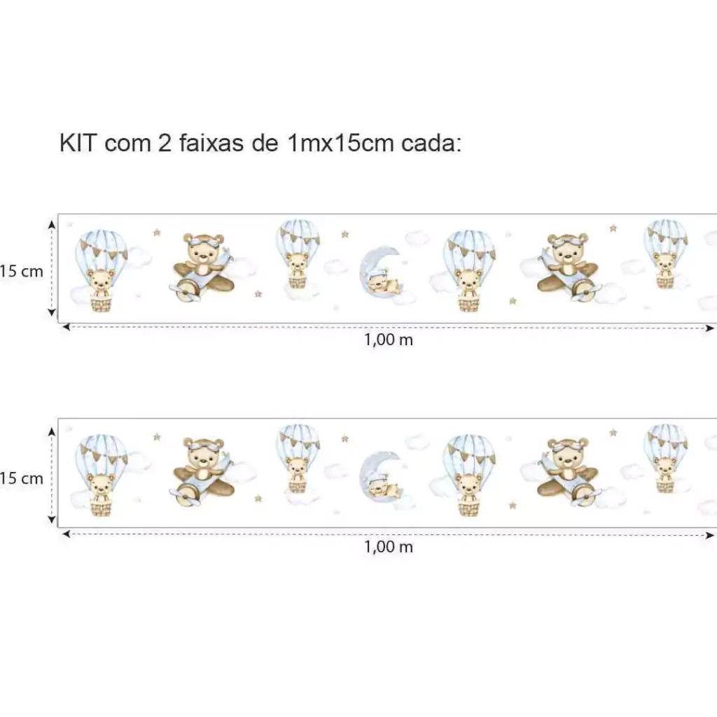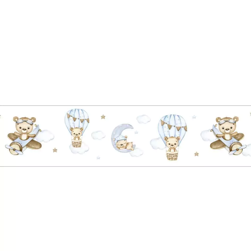 TAGs: faixa decorativa, faixa de border, faixa adesiva de parede, ursinho, balão, ursinho baloeiro, ursinho aviador