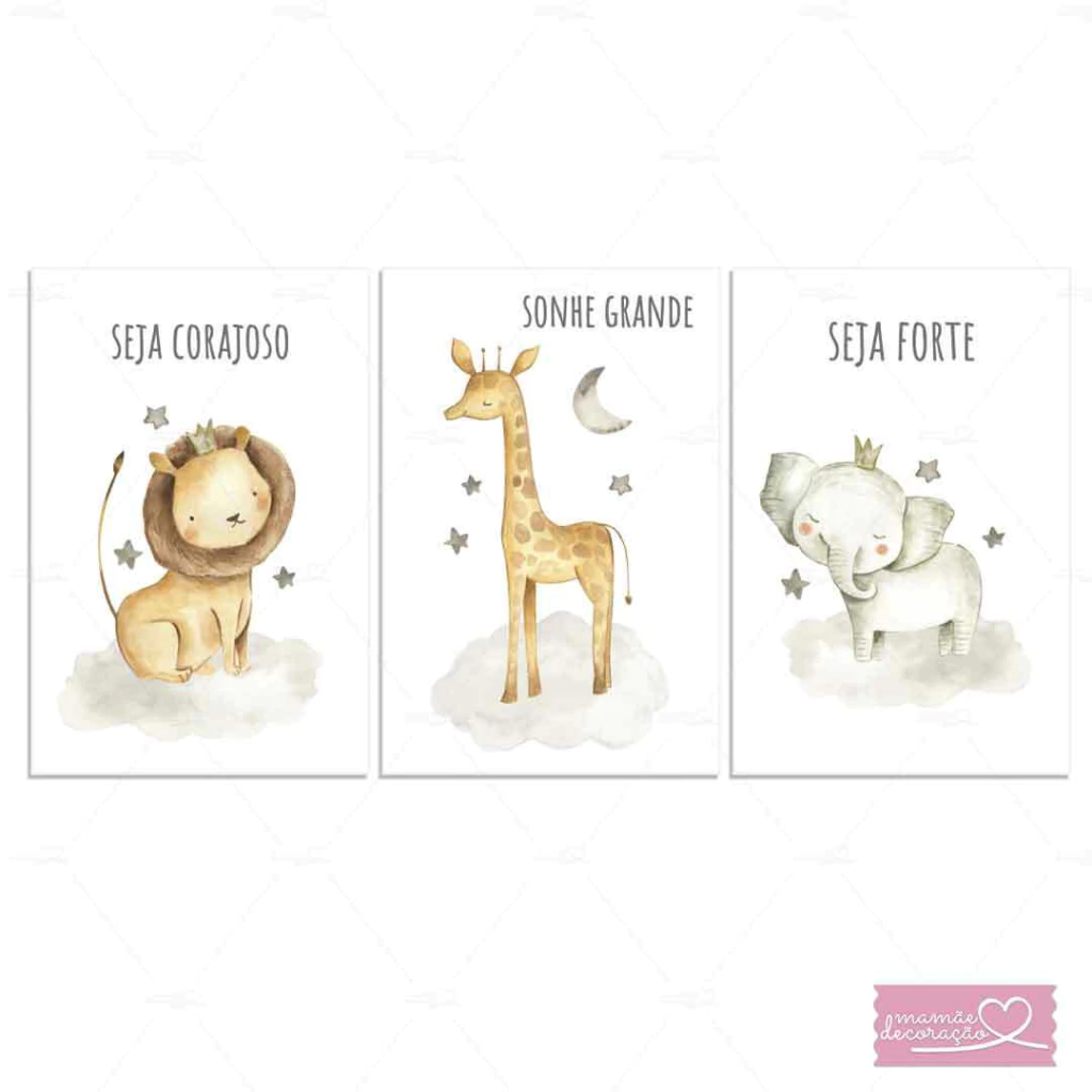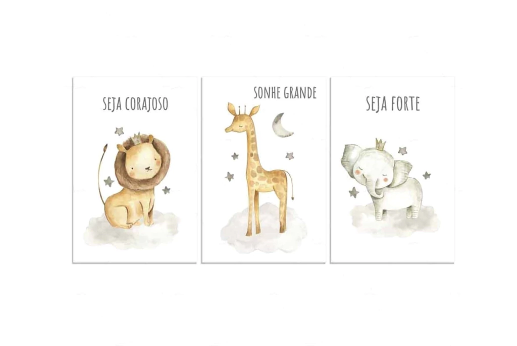 Transforme o quarto do seu pequeno com nosso Kit de Placas Decorativas Infantil Safari Aquarelado. Com lindas e super fáceis de aplicar, essas placas trazem um toque especial e divertido à decoração.