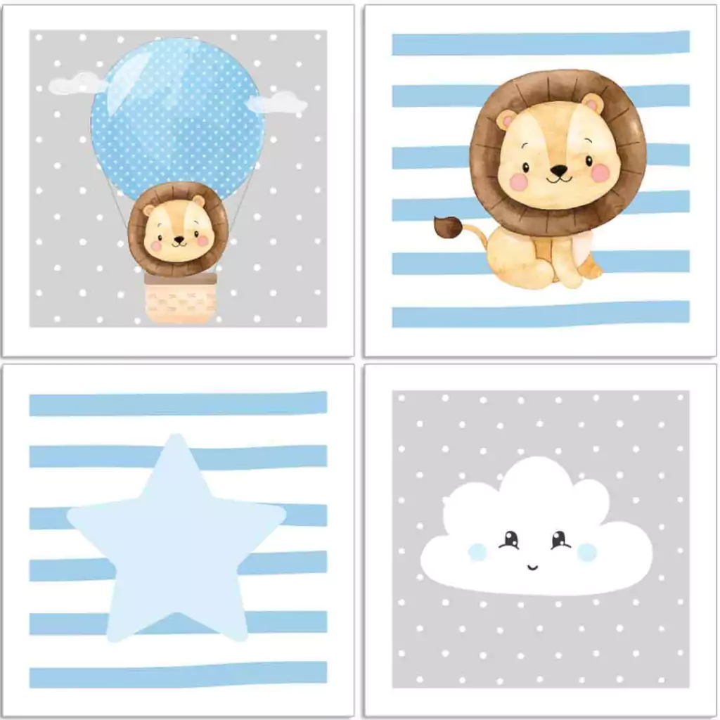 TAGs: leão, leãozinho, balão, estrelas, nuvens, leão aviador, leão baloeiro