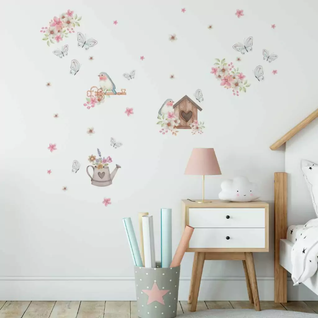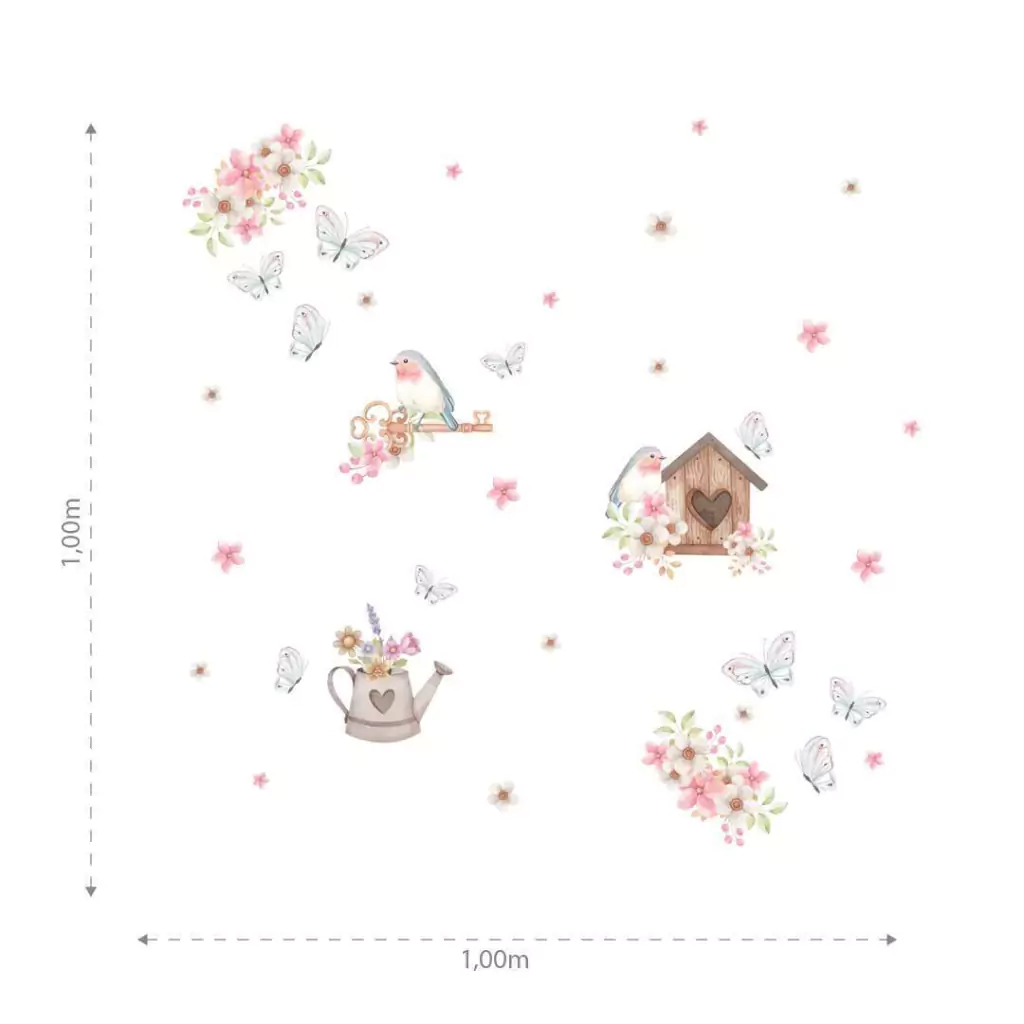 TAGs: adesivo de parede, adesivo decorativo, jardim, jardim secreto, flor, flores, passaro, passarinho, borboleta, menina