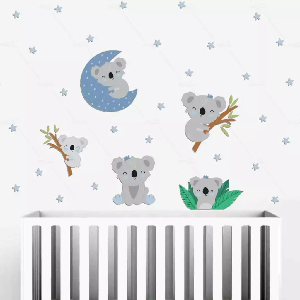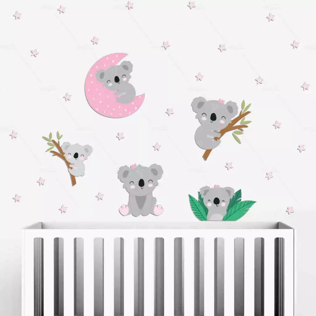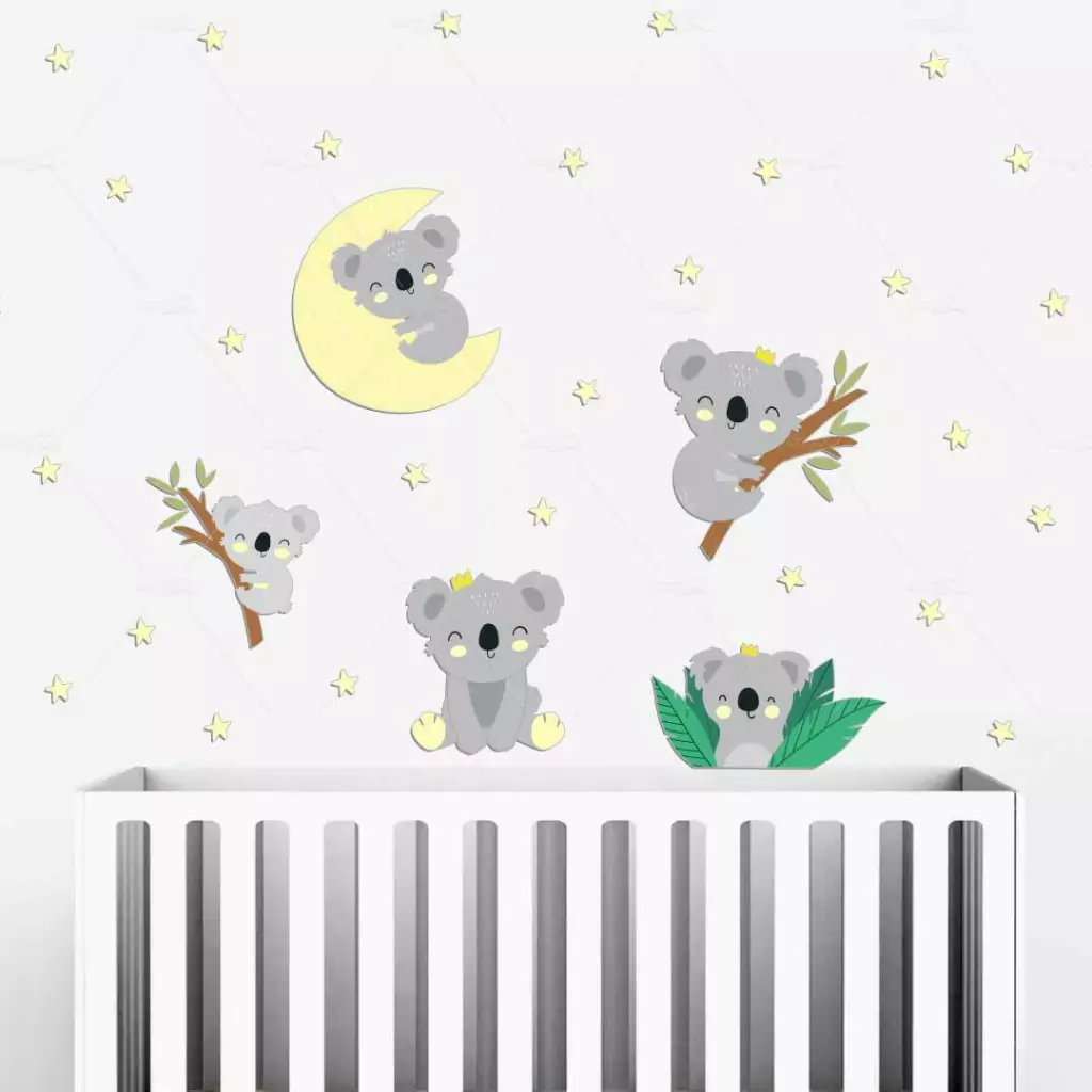TAGs: ursinha coala, ursa, lua, estrelas, ceu, folhas, menina