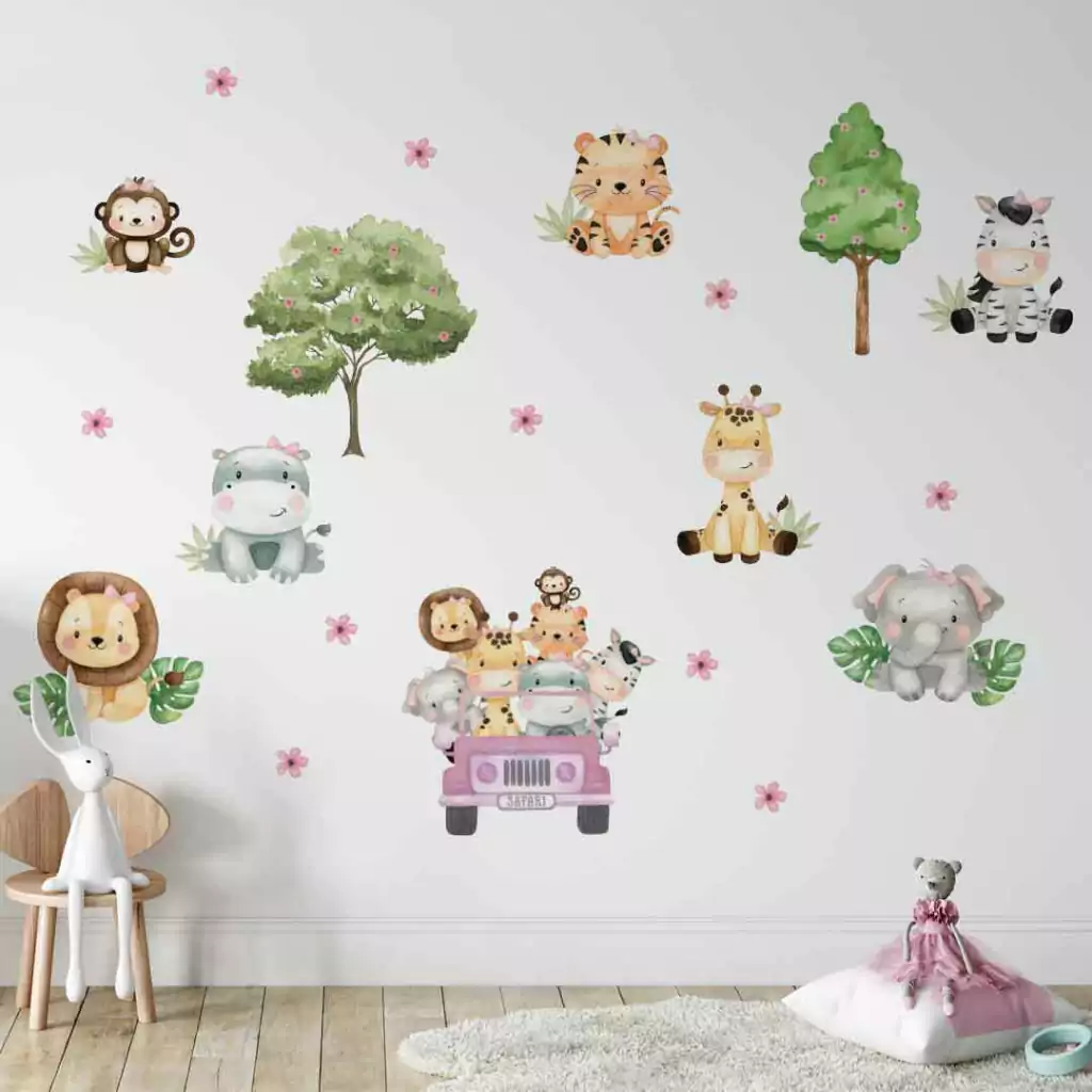 TAGs: adesivo gigante, mega adesivo, adesivo grande de parede, safari, safari aquarela, safari aquarelado, animais safari, leão, elefante, tigre, macaco, zebra, girafa, girafinha, leãozinho, rosa