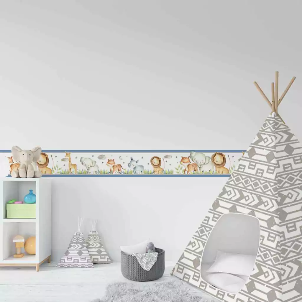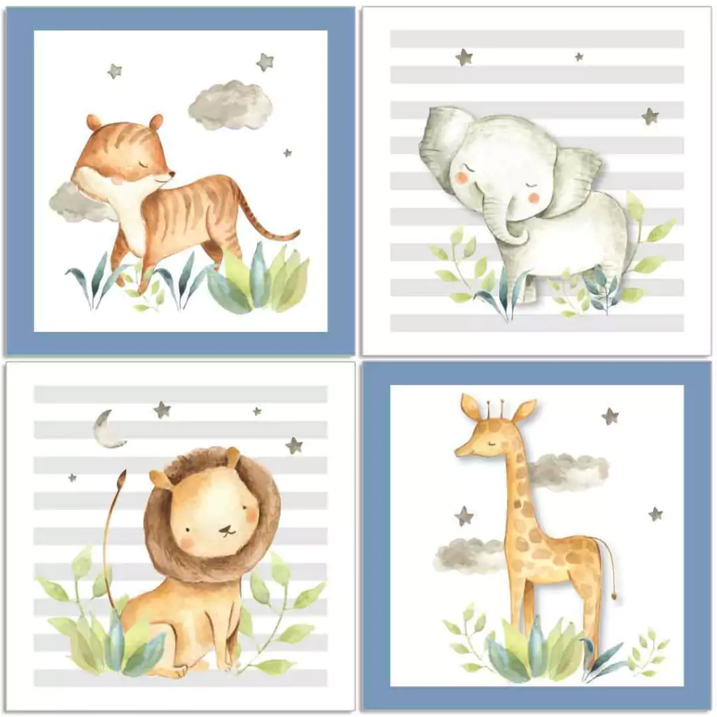 Transforme o quarto do seu pequeno com o encantador Combo Animais Safari Aquarelado Azul! Este kit mágico traz um ar de elegância e diversão, criando um ambiente onde a imaginação pode fluir livremente.