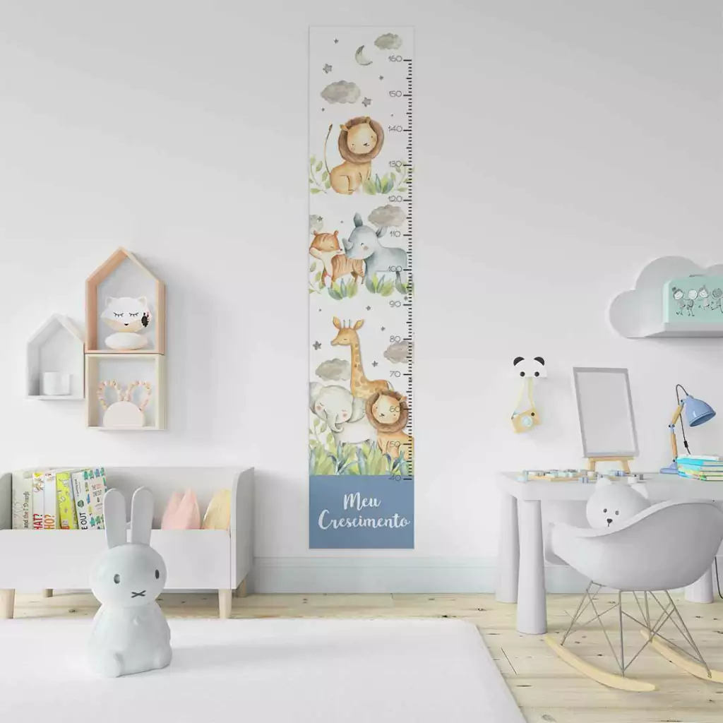 Régua de Crescimento: - 1 Unidade Adesivo Régua de Crescimento - Medidas: 30x150 cm - Aplicação: Autoadesiva, destaque e aplique na parede (não necessita de cola). A régua deve ser aplicada com 20 cm de distância do chão.