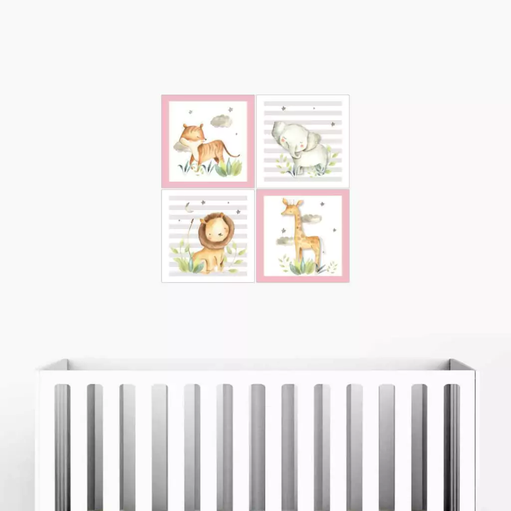 O Combo Animais Safari Aquarelado Rosa é a escolha ideal para dar um toque especial e elegante à decoração do quarto. Com fácil aplicação e sem sujeira, você transforma o espaço rapidamente, proporcionando um ambiente lúdico e encantador.