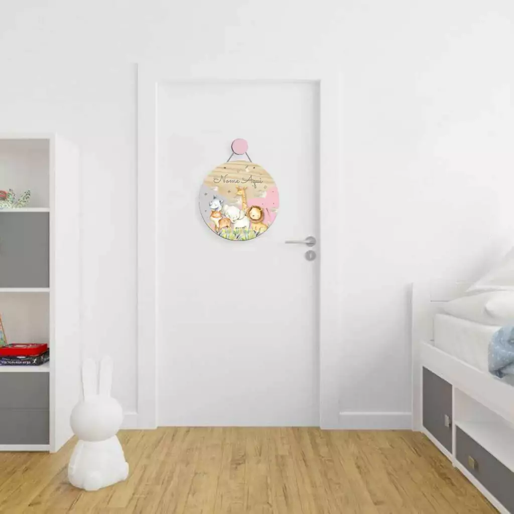 Enfeite de Porta: - 1 Unidade Placa Redonda - Flâmula - Material: MDF 6mm - Medidas: 25cm - Brinde especial: 1 suporte redondo para plaquinha - Impressão: Tecnologia Látex - Aplicação: Acompanha fio para pendurar e fita de fixação siliconada - Personalização: Nome
