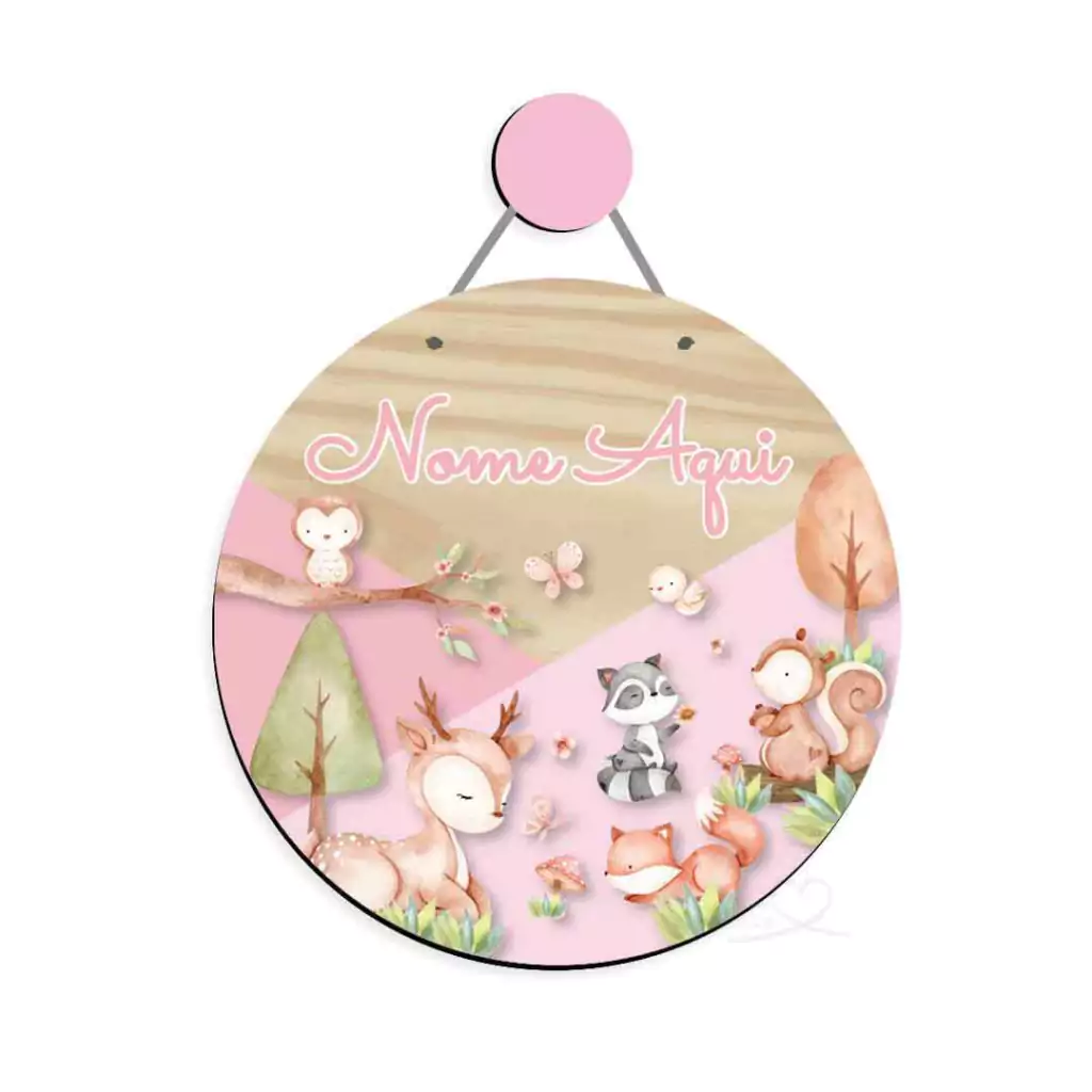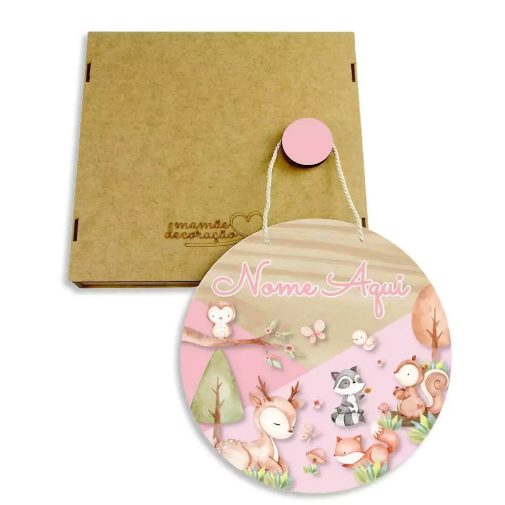 Enfeite de Porta: - 1 Unidade Placa Redonda - Flâmula - Material: MDF 6mm - Medidas: 25cm - Brinde especial: Suporte redondo para a plaquinha - Personalização: Nome