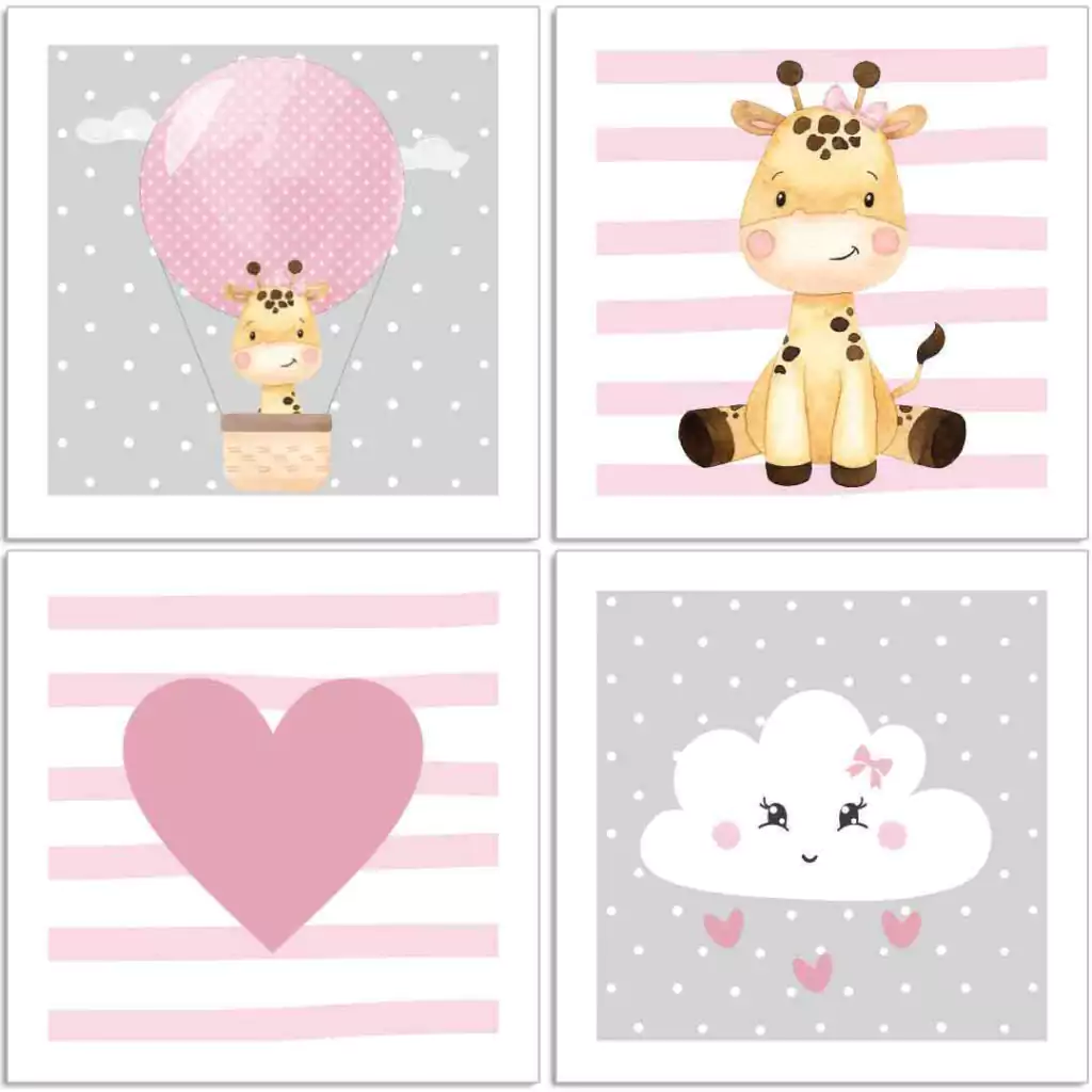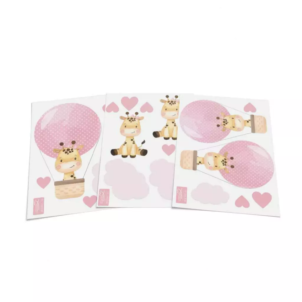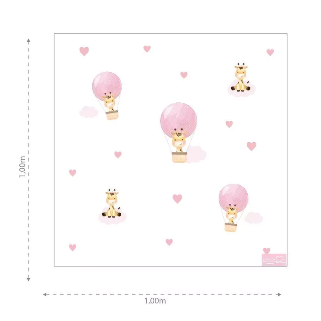 TAGs: girafa, girafinha, nuvens, nuvem, balão, balões, coração, corações, rosa, menina