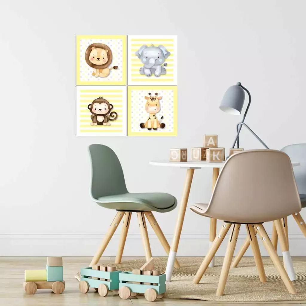 TAGs: leão, leãozinho, elefante, elefantinho, zebra, zebrinha, girafa, girafinha, aquarela, aquarelado, combo animais safari jeep, menino amarelo