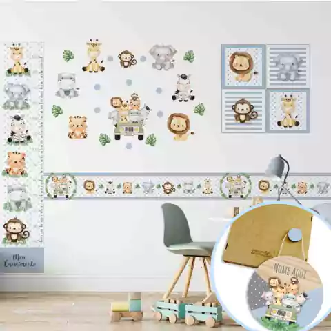 Transforme o quarto do seu pequeno em um verdadeiro paraíso com o Combo Safari Jipe Aquarela Azul! Este kit encantador proporciona um toque de elegância e diversão, criando um ambiente mágico que inspira a imaginação e o sonho.