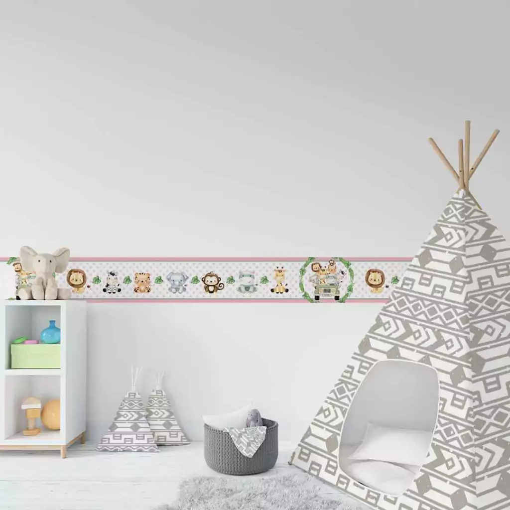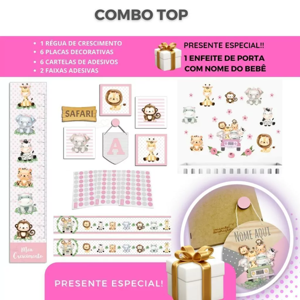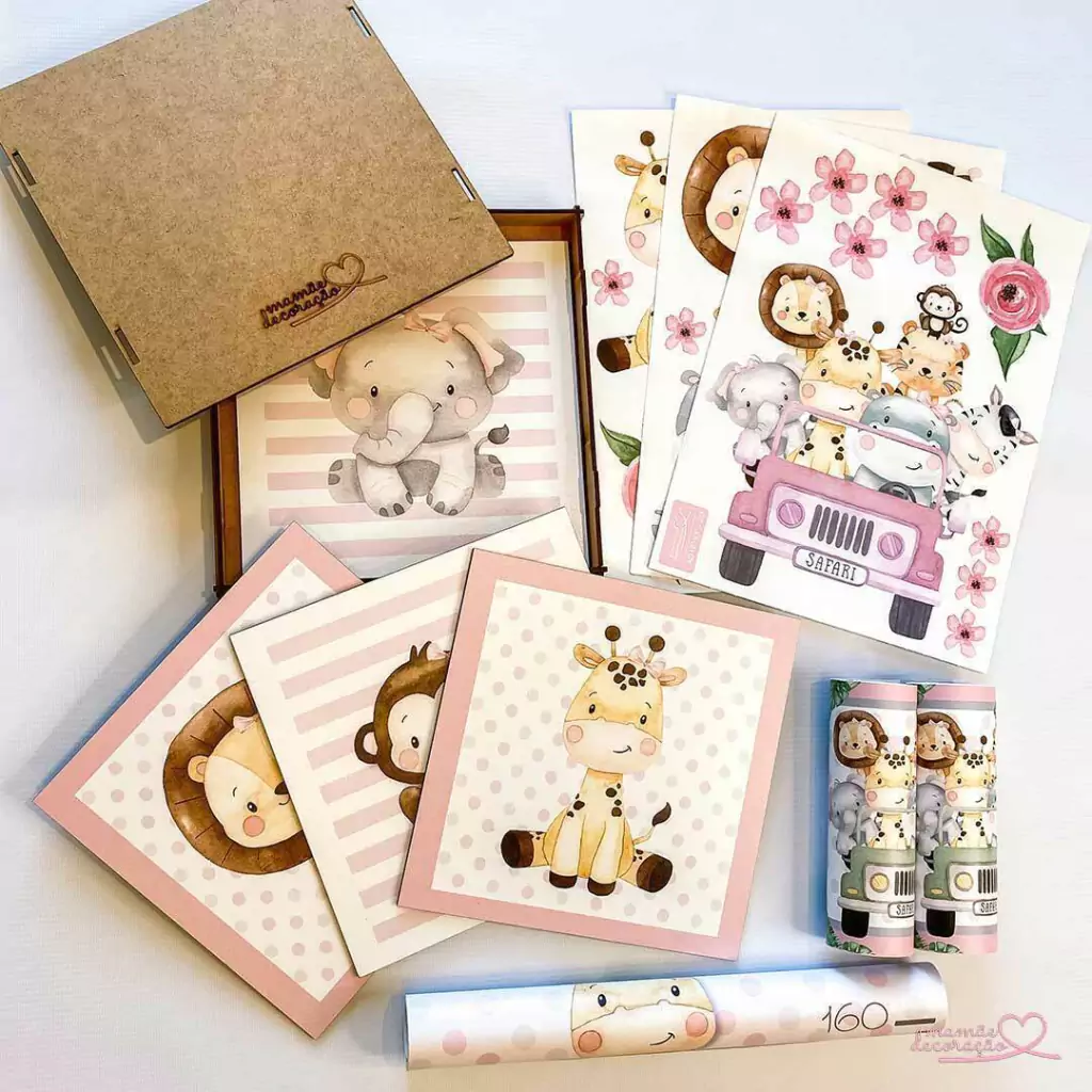 TAGs: safari, jipe, jeep, leão, leãozinho, zebra, zebrinha, girafa, girafinha, macaco, macaquinho, elefante, elefantinho, bolinhas, rosa, menina