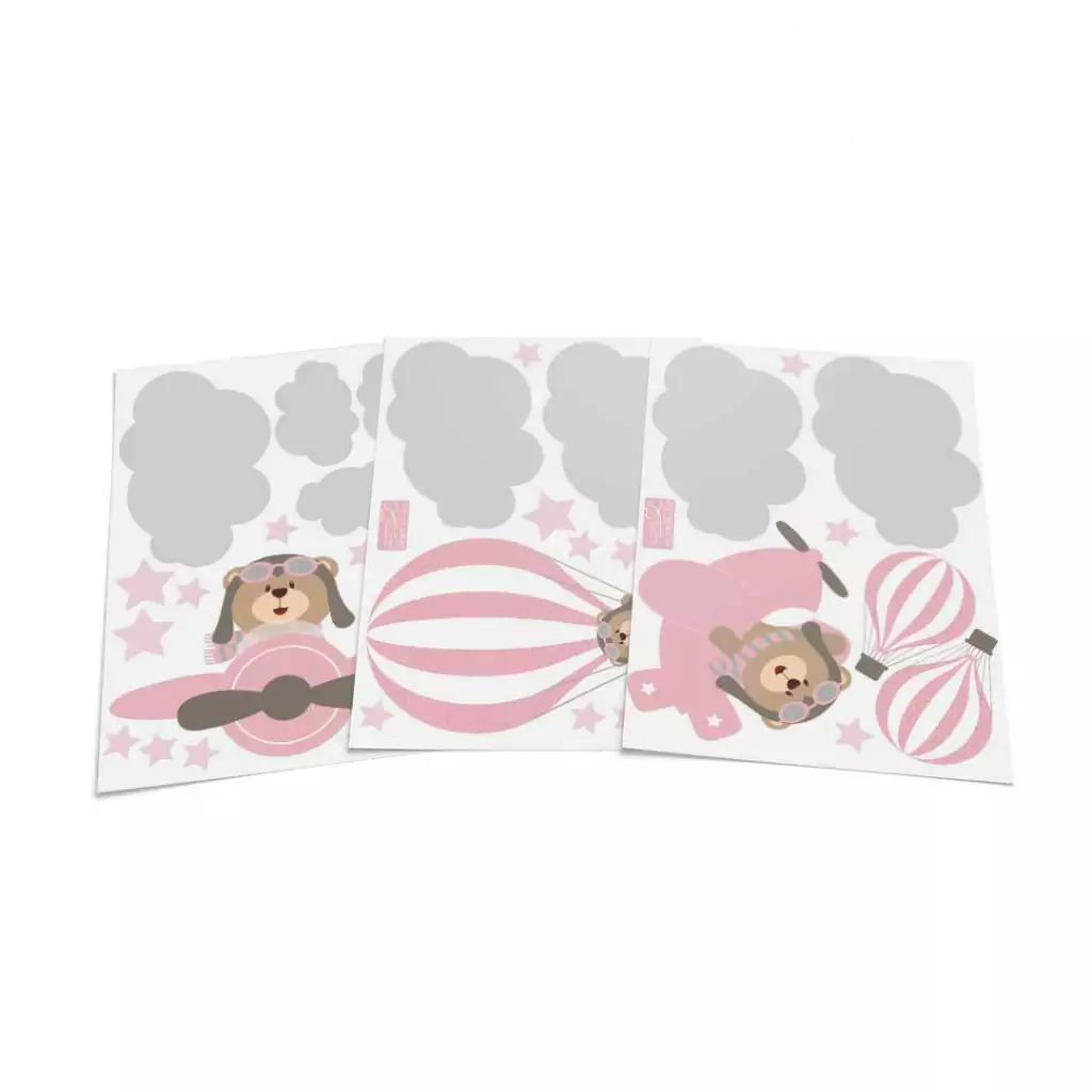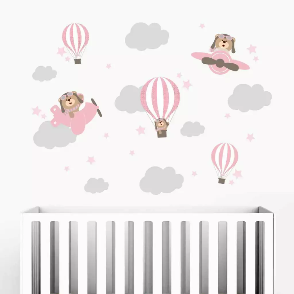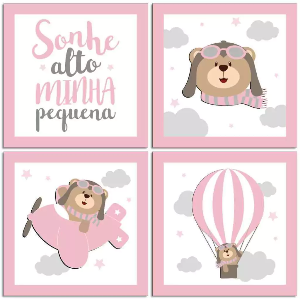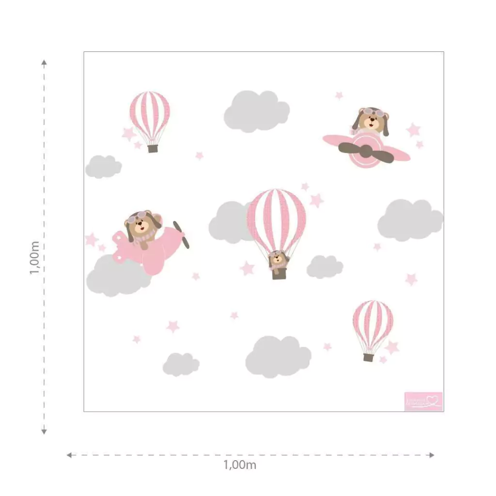 TAGs: ursa aviadora, ursinha aviadora, avião, balão, ursa baloeira, nuvem, nuvens, sonhe alto minha pequena, rosa, menina