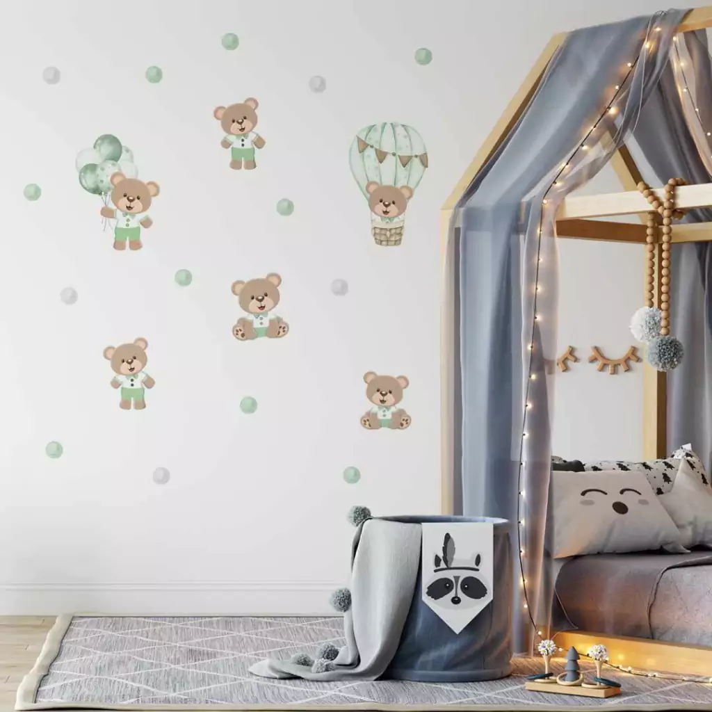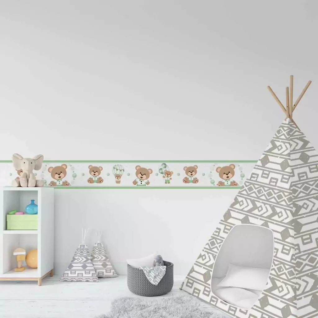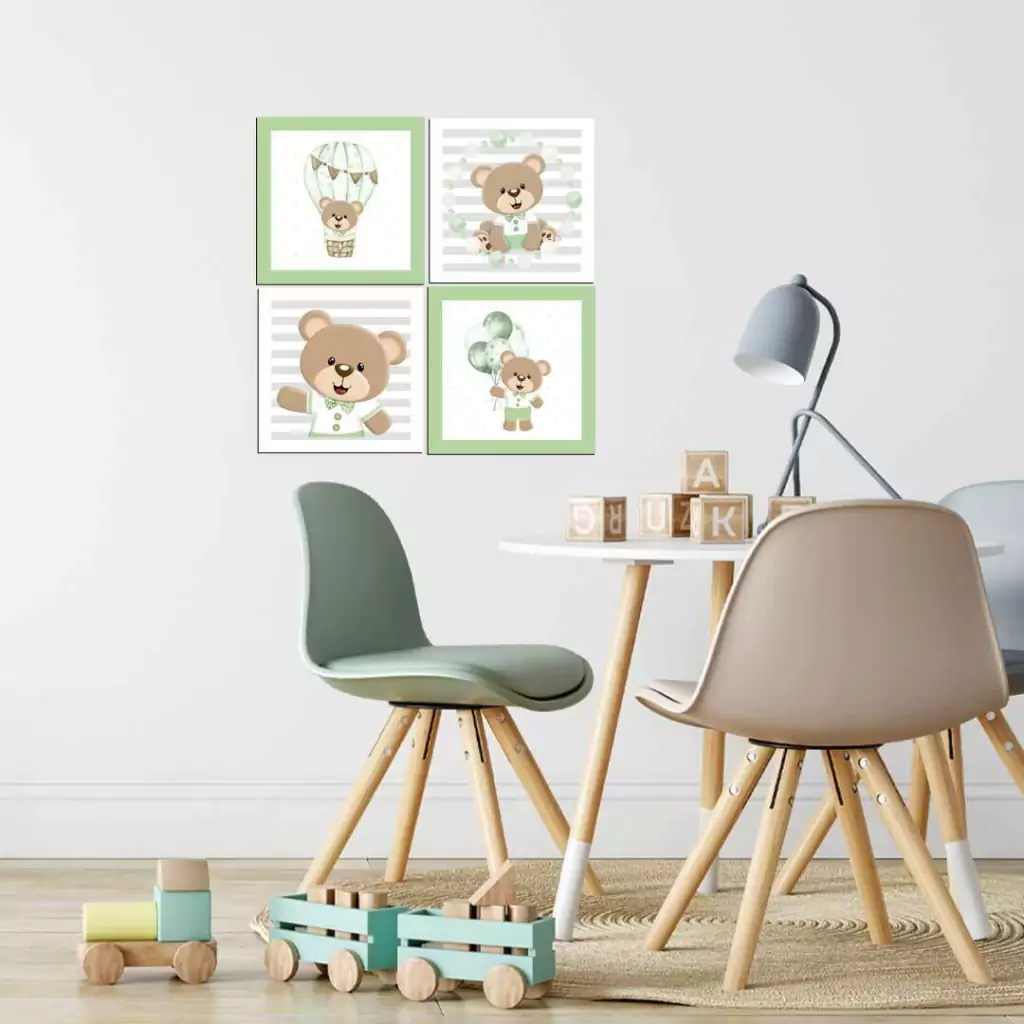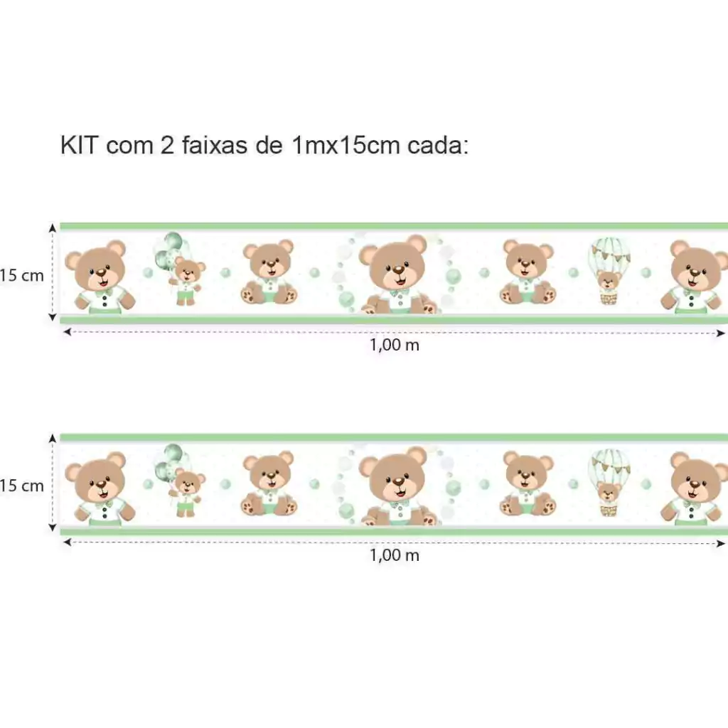 TAGs: adesivo, adesivo de parede, combo, kit, kit decoração, enfeite de porta, faixa, faixa adesiva, régua de crescimento, ursinho, ursinho baloeiro, balão, balões, verde, menino