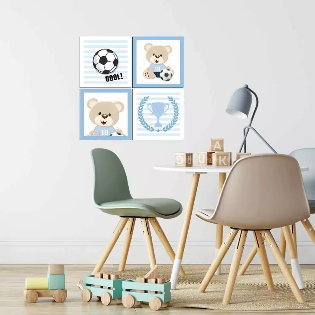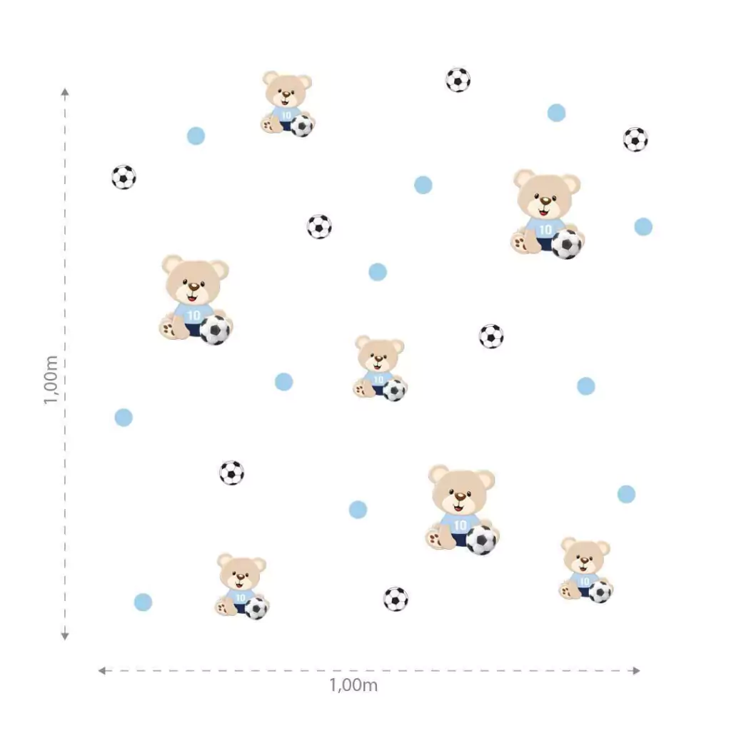 O Combo Ursinho Futebol Azul é ideal para dar um toque especial à decoração do quarto. Com fácil aplicação e sem sujeira, você transforma o espaço rapidamente, criando um ambiente inspirador e cheio de vida.