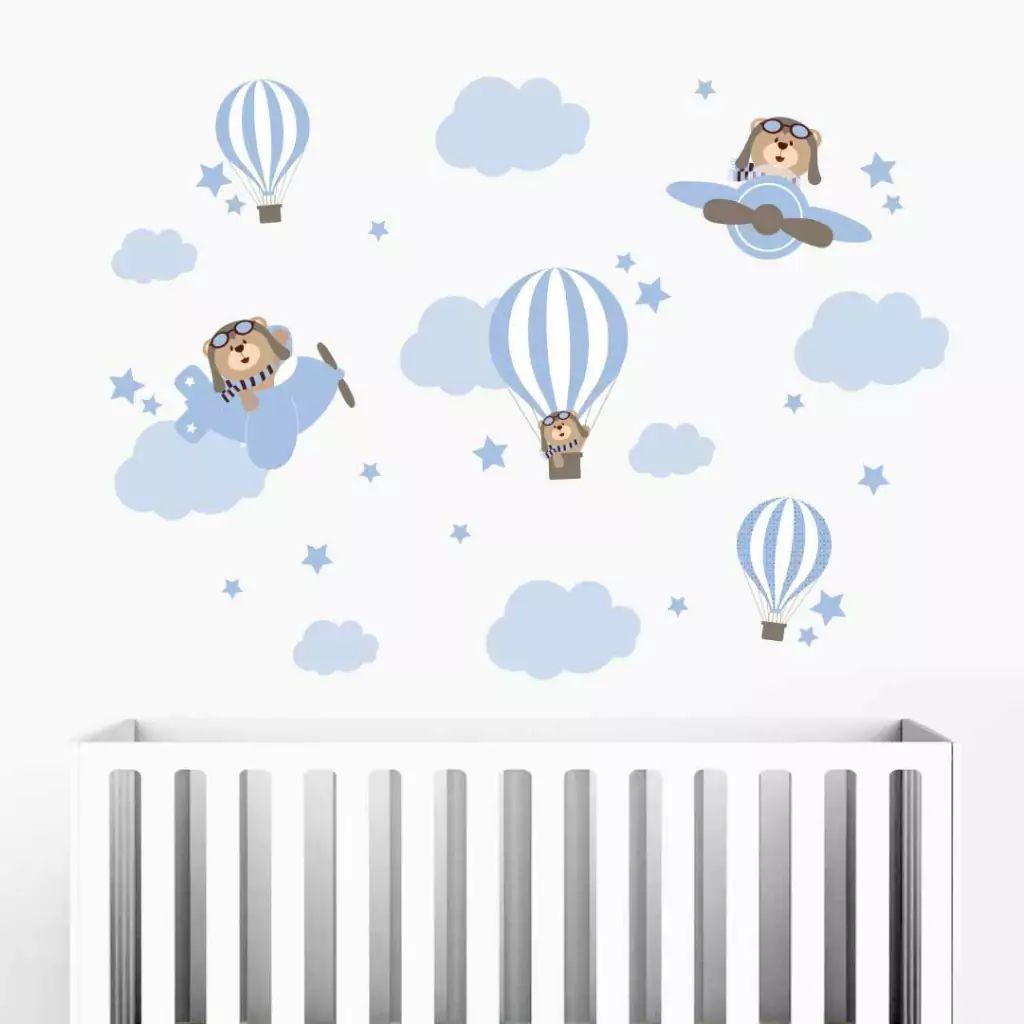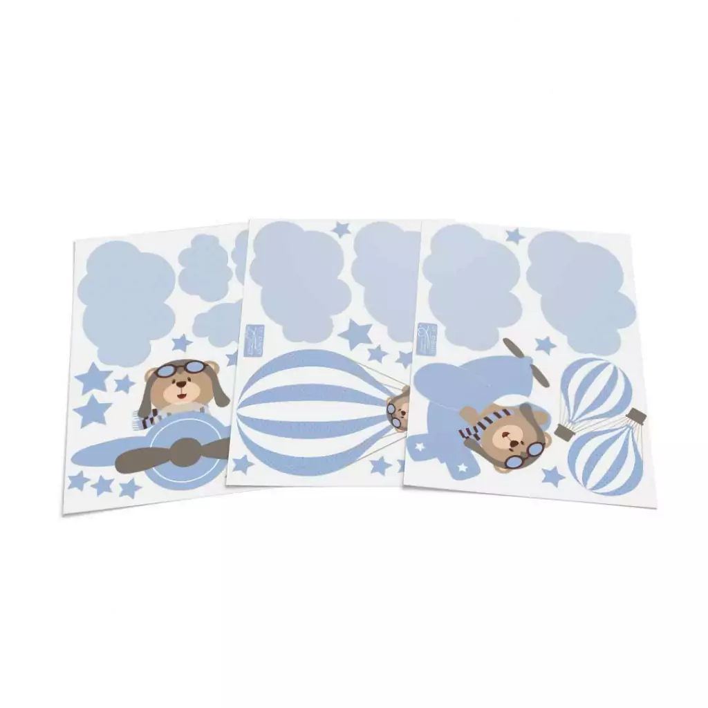 TAGs: urso aviador, ursinho aviador, avião, balão, urso baloeiro, nuvem, nuvens, sonhe alto meu pequeno, azul, menino