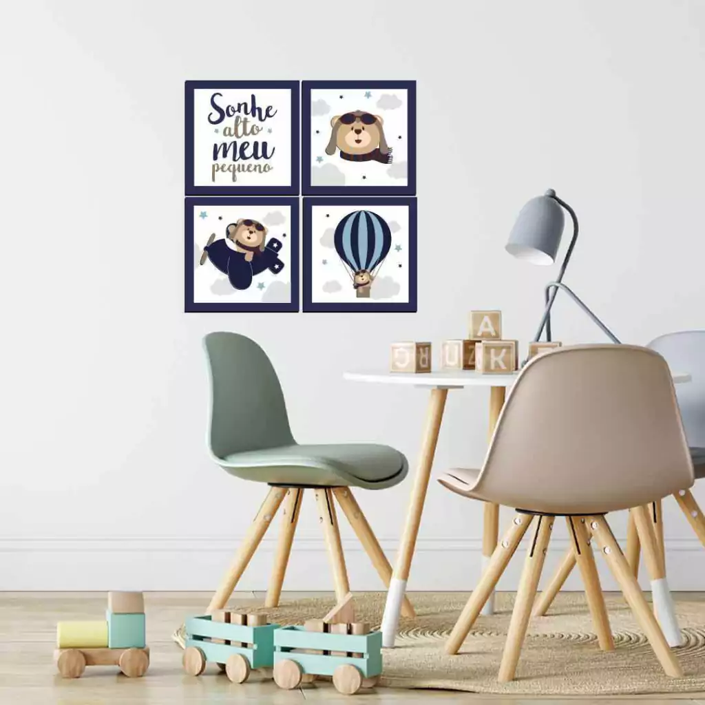 TAGs: urso aviador, ursinho aviador, avião, balão, urso baloeiro, nuvem, nuvens, sonhe alto meu pequeno, azul, menino