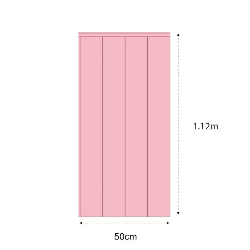 4 Painéis Ripados em Adesivo (Meia Parede): Medidas: 112cm de altura por 50cm de largura cada painel. Crie um visual moderno e aconchegante com painéis ripados em rosa, dando textura e profundidade ao ambiente.