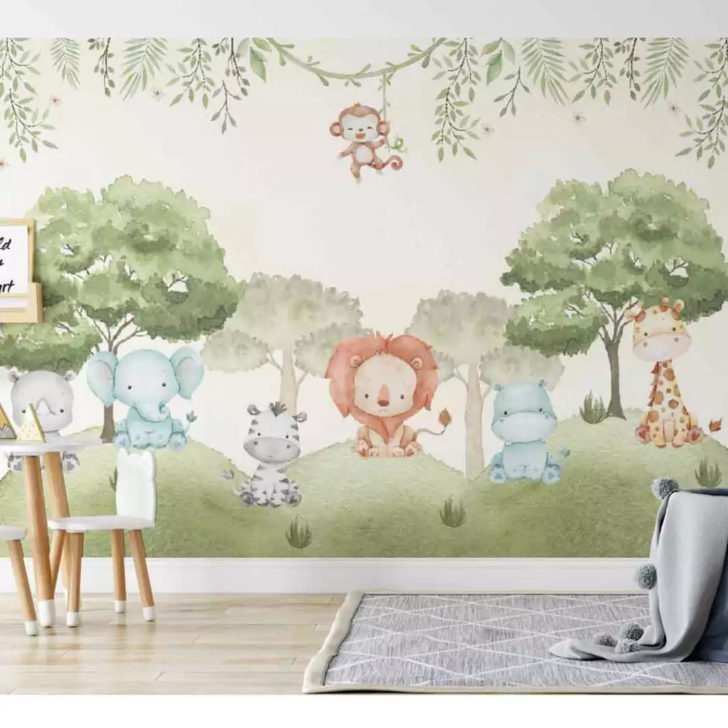 Leve a magia da selva para dentro de casa com o Papel de Parede Safari Baby Aquarelado. Ideal para criar um ambiente cheio de vida e aventura, este design é uma escolha encantadora para espaços que buscam trazer a exuberância e o mistério da selva para o dia a dia dos pequenos.
